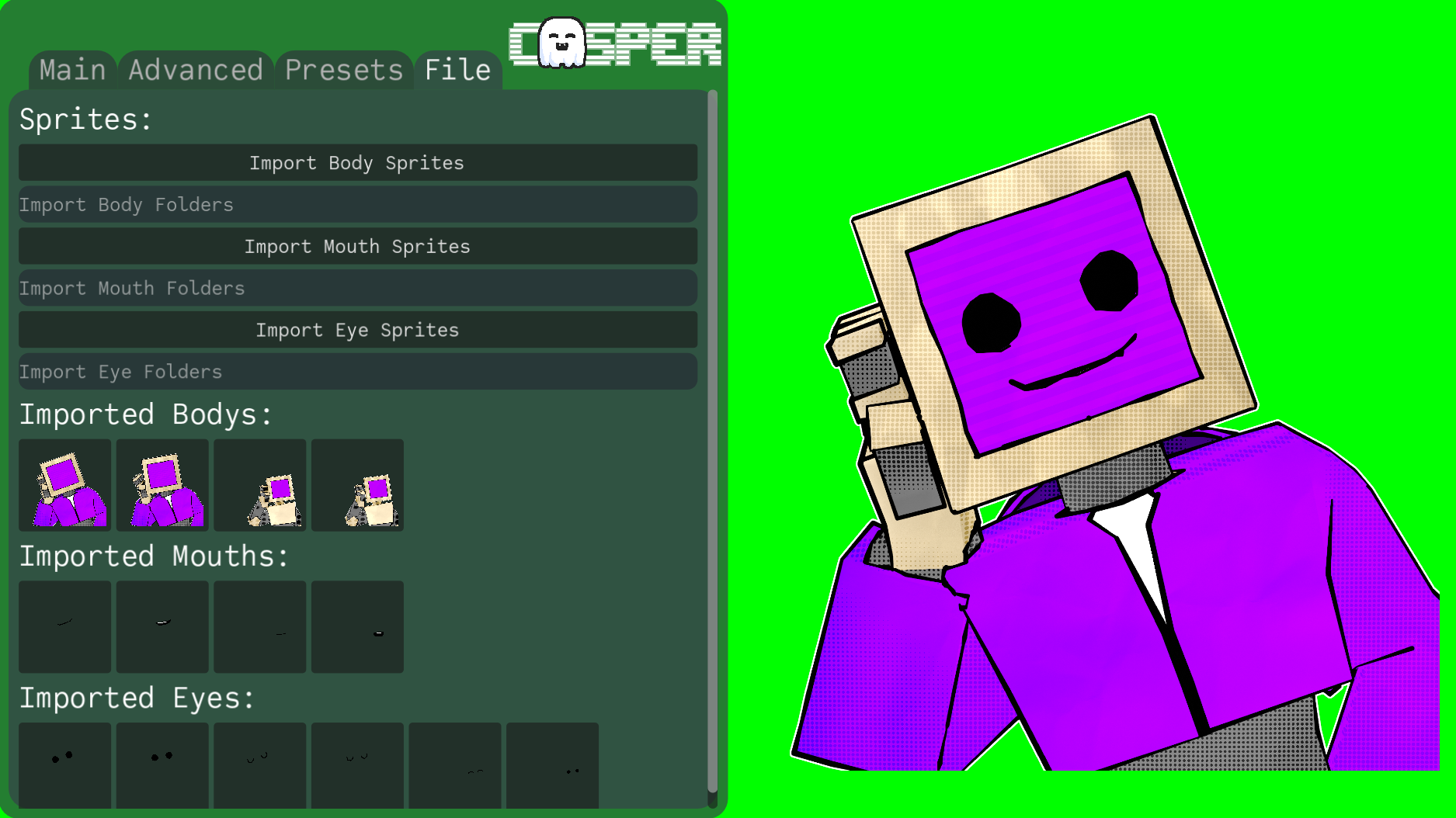 Built with simplicity and flexibility in mind, Casper lets you assemble and control a fully customizable PNGTuber setup using sprites, animations, and presets all in a clean, tab-based interfaces